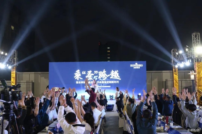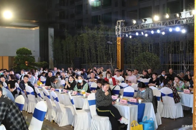 经销商晚宴当日晚6时许,以【乘“圣”跨越】为主题的,星空电竞xingkong集团集团第45届国际家具展接待晚宴暨2020年度优秀经销商颁奖盛典,在营销中心四楼景观花园隆重举行,来自全国各地的经销商朋友欢聚一堂,共同分享一场精彩纷呈的晚宴。