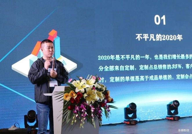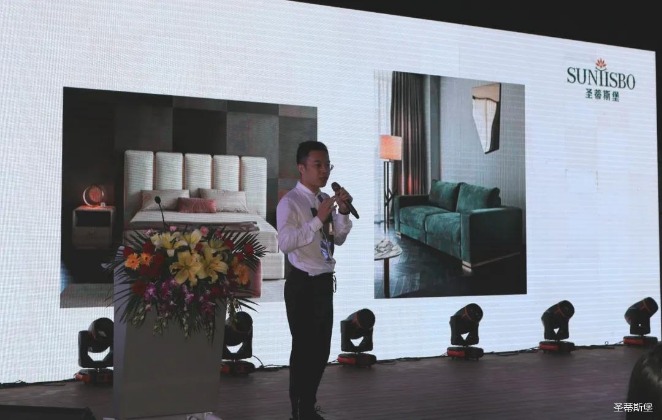 华灯璀璨的开场仪式,点燃了现场如火如荼的气氛。星空电竞xingkong集团集团营销总经理陈玉伟先生对晚会进行了主题发言,他对2020年的营销工作进行了总结,并着重从营销工作部署、重点项目开展、产品整合、拎包帮扶、渠道运营和移动+定制整装优势等方面对2021年的营销工作做了全面的统筹规划。同时,他还讲解了“美国梦凯莎床垫”新品的产品工艺、市场优势、产品定位,使经销商对我们的新产品拥有更深入的认识和了解。